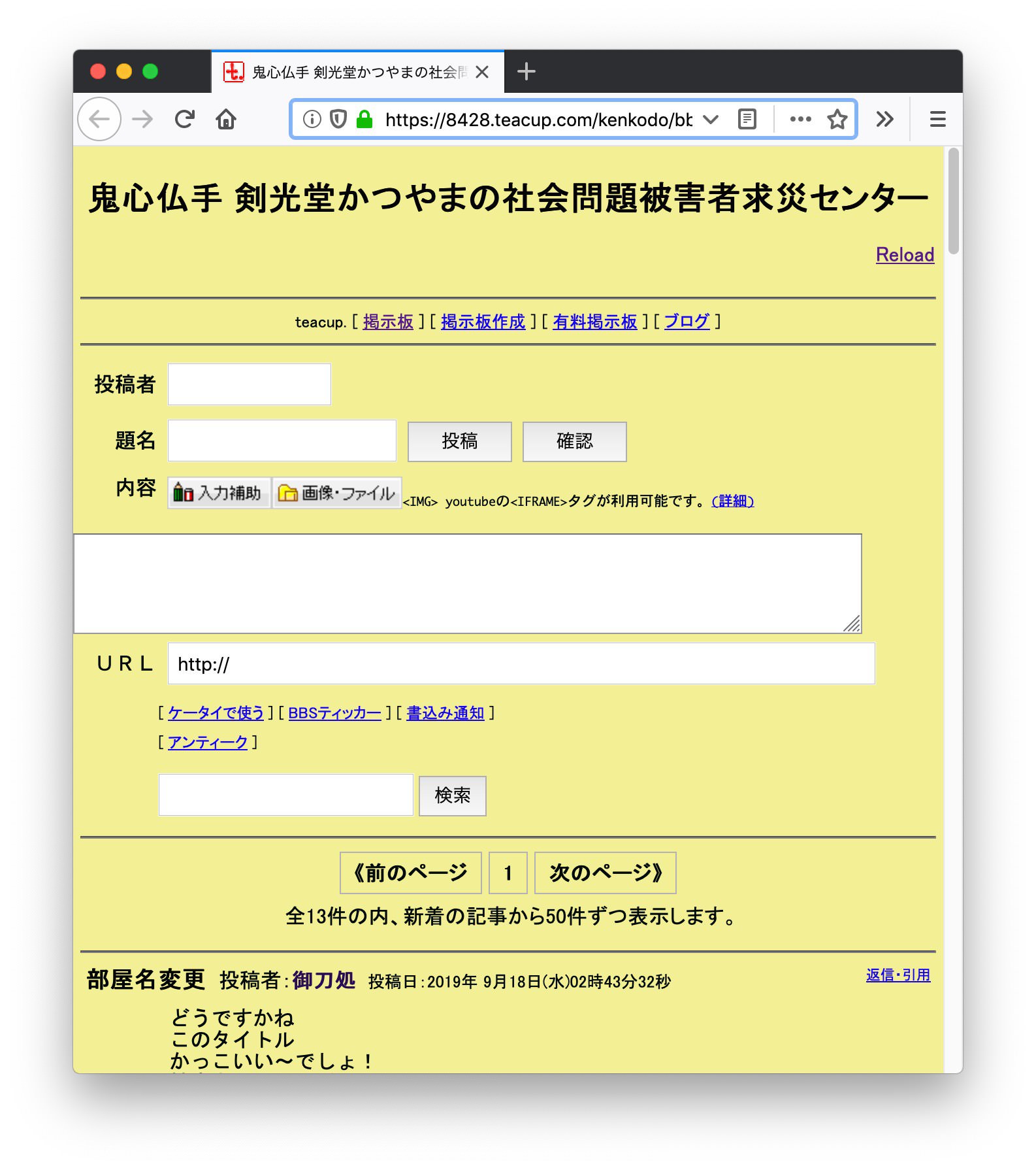 鬼心仏手 剣光堂かつやまの社会問題被害者求災センター(旧 剣光堂 日本刀談話室)< teacup. 掲示板 {wm; at, wm; wm}