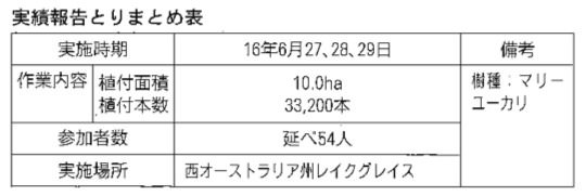 県内ではなかなか実現できないCO2削減を、EPOは諸外国で実施し、コスト削減と現地の環境ニーズに合致した効率化も同時実現に至った。同連の気候変動枠組条約の規定に沿った実施内容であり、今後は西豪州政府筋関連の合法的認証を受ける予定である。