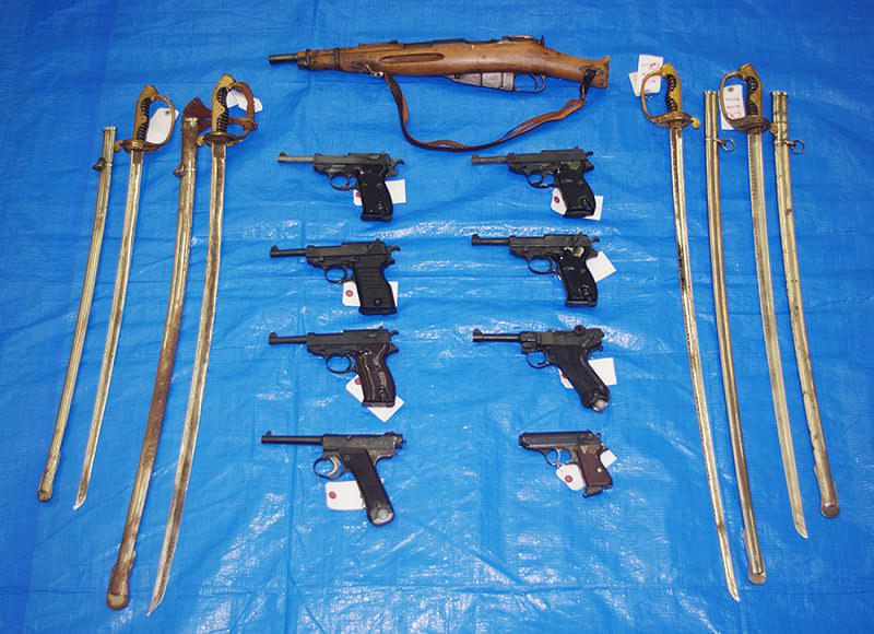 福井県警が押収した小銃や軍刀の一部=県警提供