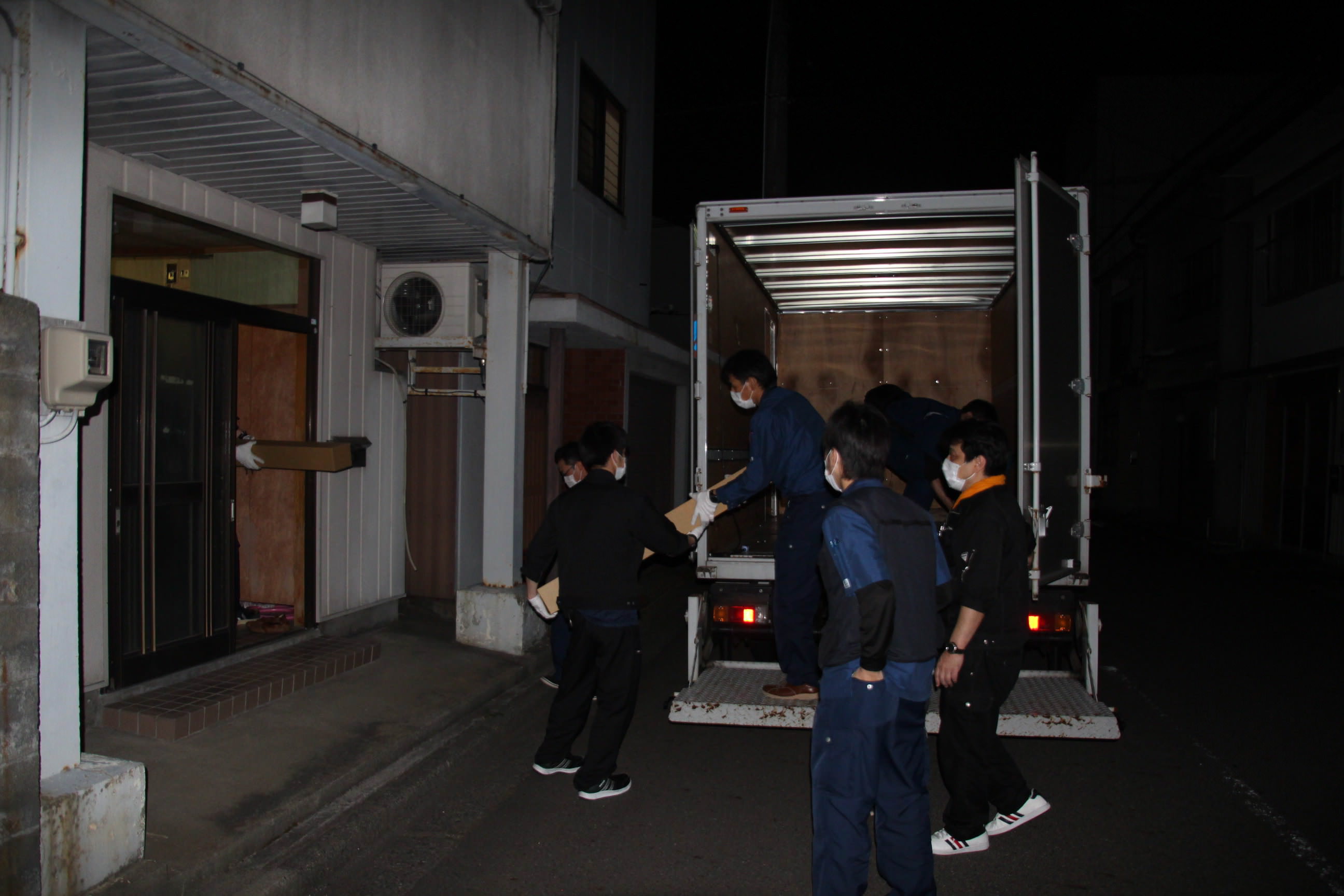 当該不動産物件から押収物を運び出しトラックに積み込む捜査員(2016年05月18日22時35分ごろ)