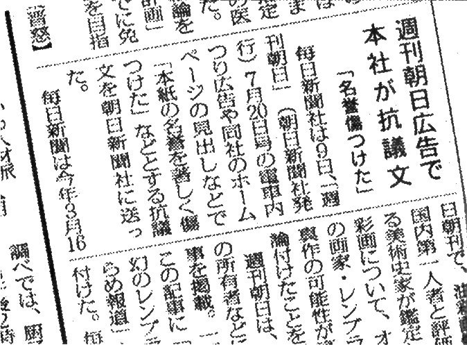 - 毎日新聞による「幻のレンブラント」報道 < 勝山剣光堂ニュース